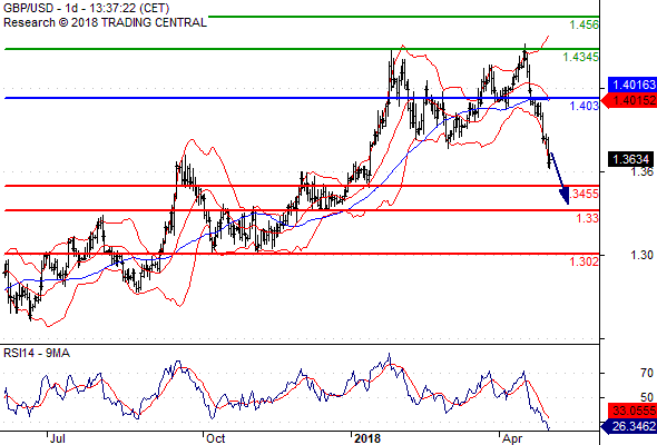 จุดที่ต้องการ: สถานะขายต่ำกว่า 1.4030 เป้าหมายต่อไปที่ 1.3455 และ 1.3300