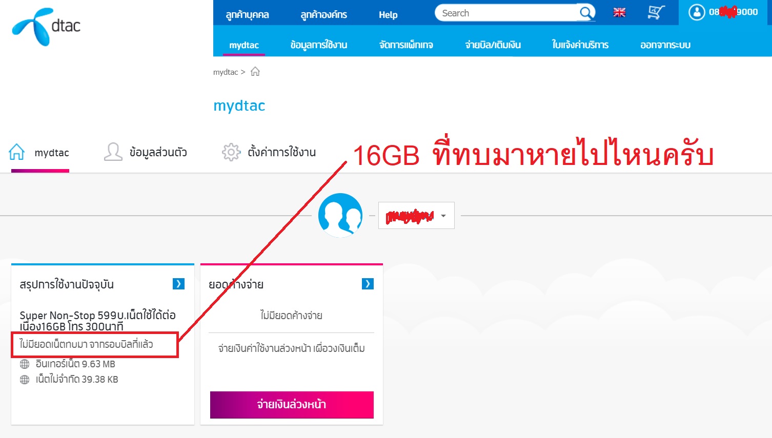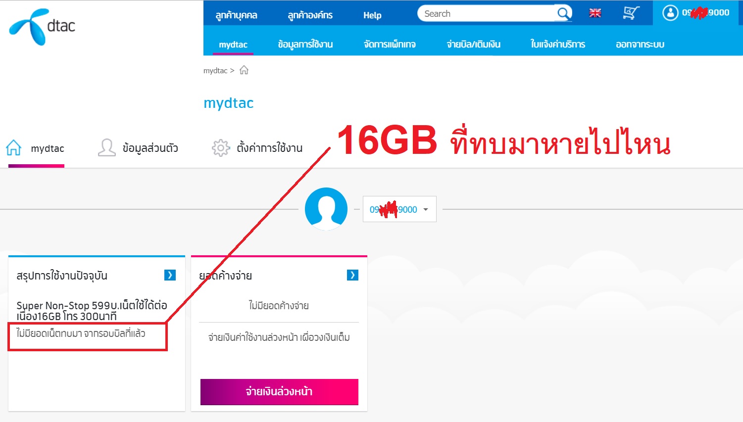 ในเมื่อตกลงกับลูกค้าไว้แล้วว่าต่อโปรเดิมให้ ซึ่งรอบบิลที่แล้วต้องมีเน๋็ตเหลือให้ทบมาในรอบบิลใหม่นี้ เบอร์ละ 16GB แต่ทำไม่มีครับ รบกวนคืนเน็ตตามสิทธิ์