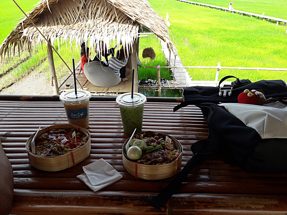 ข้าวคนละเข่ง กาแฟคนละแก้ว กล้วย 3 ลูก ลมเย็นๆ นั่งหลับตาสักสี่ห้านาที ก้อดีเหมือนกัน