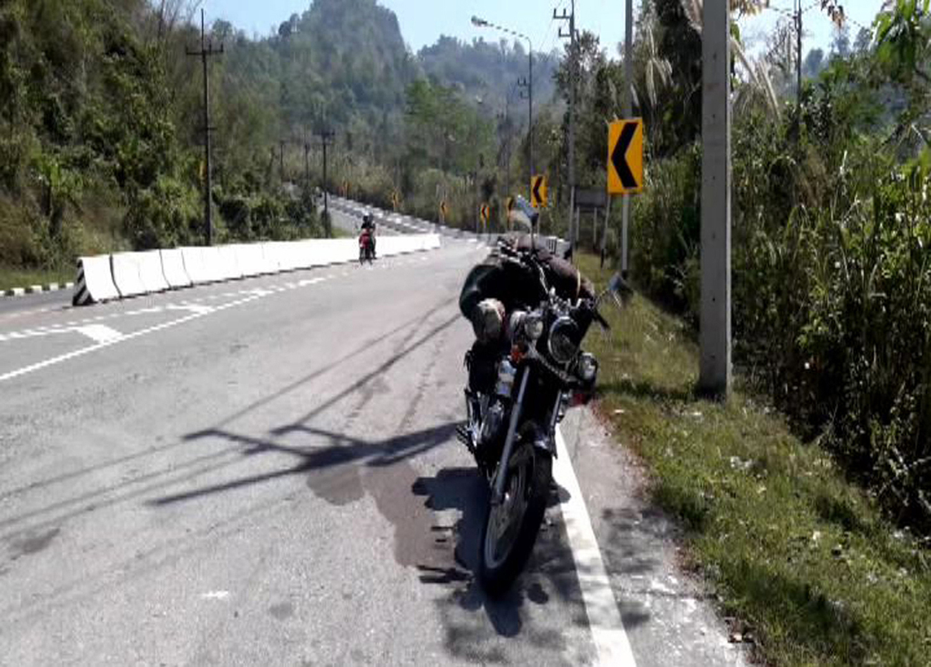 14 เมษา 61 ออกจาก "ป้อมปี่" อช.เขาแหลม เลี้ยวซ้ายมุ่งสู่อำเภอสังขละบุรี คงเหลือระยะทางอีกเพียงแค่ 35-36 Km. ผ่านทางขึ้นลงโค้งเยอะ พื้นผิวถนนกว้างและดีกว่าแต่ก่อน แป๊ปเดียวก้อถึงทางลาดชัน 2 Km.สุดท้าย ที่จะเข้าเป้าหมาย "สังขละบุรี" ควรระวัง!