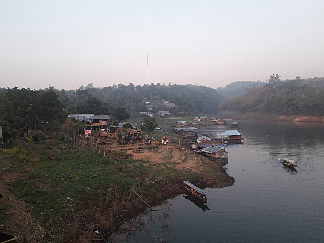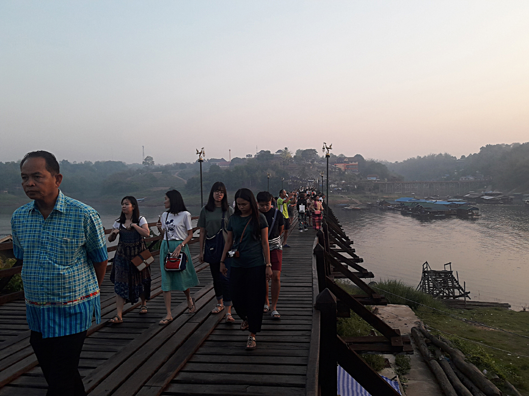 หลังจากอิ่มหน่ำสำราญใจ ยังคงนั่งระยะหนึ่งให้ข้าวเหนียวนึ้งสลาย มองสายน้ำซองกาเรียใสๆไหลกระทบโขดหินเป็นระลอกคลื่นพักใหญ่แล้วบึ่งกลับที่พัก พอตกเย็นเข้าตลาดหาข้าวกิน แล้วปรึกษากัน.. ถ้าจะดูสรงน้ำพระต้องนอนต่ออีก 2 คืน กับอากาศร้อนๆนอนเหงื่อไหลย้อย จะดูมั๊ย ..ถ้าไม่ดูงั้นพรุ่งนี้ล่องลงไป "น้ำตกห้วยแม่ขมิ้น" นอนแช่น้ำกันดีกว่า เพราะว่าไม่ได้ไปนานแล้ว