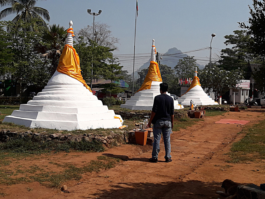 ถึงตลาดสังขละ ยังคงมุ่งตรงไปจุดชมวิวเทศบาลวังกะ เพื่อกางเต็นท์พักค้างเหมือนเช่นเคย กางเต็นท์เสริจ นั่งเล่นนอนเล่นเอนหลังบ้าง เดินดูโน้นนั่นนี่รอเวลาแดดร่มลมตกแล้วไป "วัดวังวิเวการาม" เพื่อสักการะสิ่งศักดิ์สิทธิ์ที่คนพื้นถิ่นเคารพศรัทธาพร้อมหาข้อมูล "สรงน้ำพระรางกระบอกไม้ไผ่" จะมีขึ้นวันไหน? เวลาใด?
