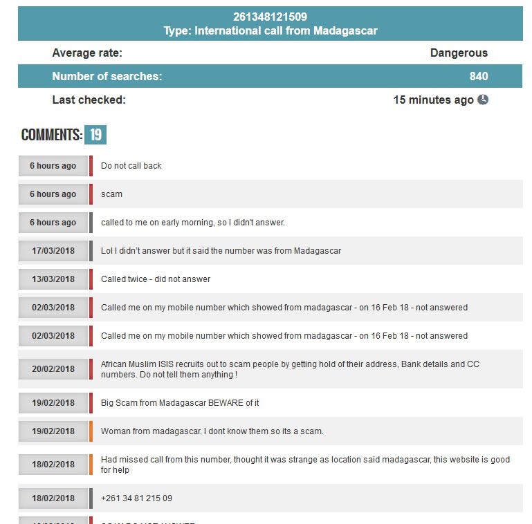 พอดีว่าเมื่อเช้ามีเบอร์แปลกโทรมาตอนเวลา 06:20 น. จากมาดากัสการ์