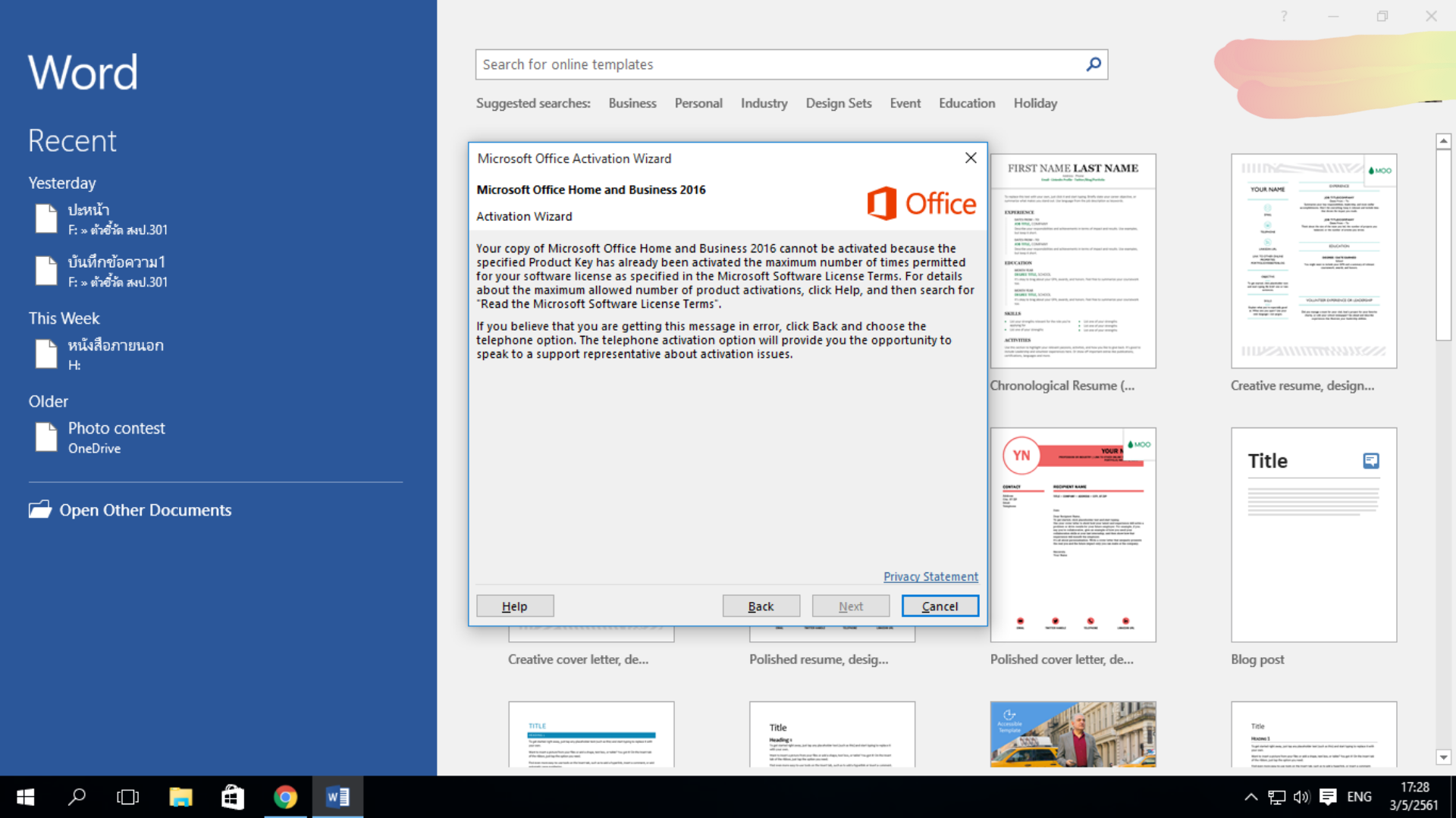 ลองใช้คีย์ office ไป 2 แผ่น ไม่สามารถใช้ได้