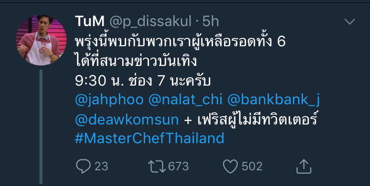 แฟนมาสเตอร์เชฟห้ามพลาด พรุ่งนี้ 9:30 น. พบกับ 6 คนสุดท้ายในรายการสนามข่าว