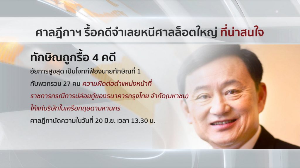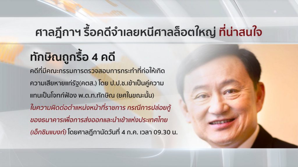 ศาลฎีกาฯ รื้อคดีจำเลยหนีศาลล็อตใหญ่ “ทักษิณ” ถูกรื้อ 4 คดี