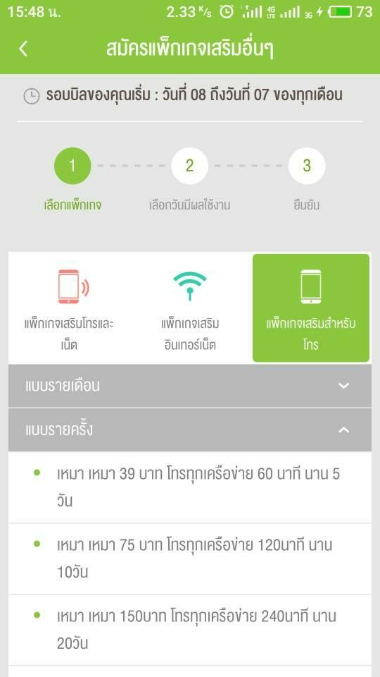 ทีนี้ผมลองเข้า app my ais มันมีให้สมัครแพคเก็จเสริมต่างๆ แต่ที่ผมสนใจคือ แพ๊คเกจเสริมการโทรรายครั้ง ตามรูป