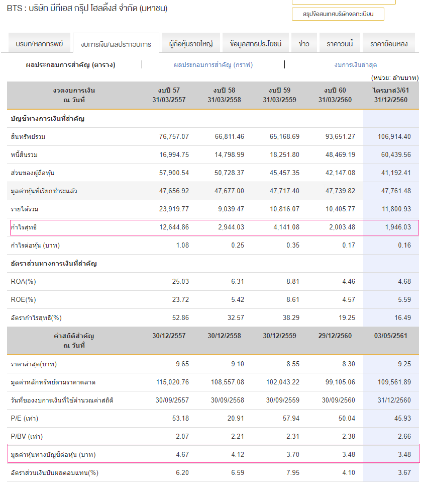BTS งบก็มีกำไรแต่ทำไม ราคา Book Value ถึงลดลงตลอด ?