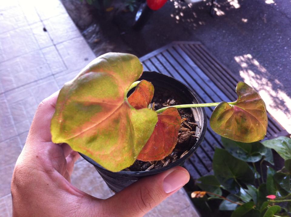 ผมซื้อบอนสีมาชื่อว่าปีกกนิรี หลังจากได้รับของผมก็จัดการล้างราก แช่น้ำปูนใส เปลียนกระถางหลังจากนั้นก็ผสมดินปลูกนำต้นไม้ใส่ตู้อบบอน ผ่านไป 1อาทิตย์ ใบมีอาการเหลืองบริเวณปลายใบ ผมจึงจับใบขึ้นมา สรุ