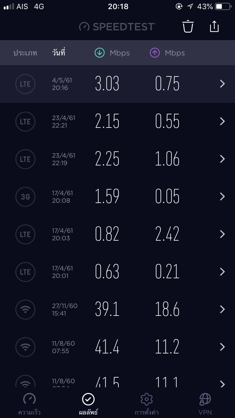 ใช้โปร 1299 บาทต่อเดือน เช็คสปีดไม่เคยได้เกิน 50 Mb เลยซักครั้ง ทั้ง Dow ทั้ง Up รู้สึกเหมือนโดนเอาเปรียบ