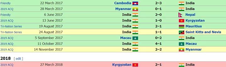 ผลงานทีมชาติอินเดีย2รายการหลังและอุ่นเครื่อง