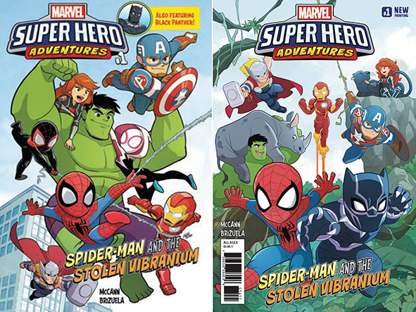 แก้ข่าวกันนิดหน่อย นึกว่ามินิซีรีย์ (ที่มาร์เวลพยายามแถว่าเป็นตอนเดียวจบแต่มีหลายตอน) Marvel Superhero Adventures จะไม่ใช่ Earth-616 เพราะผมเห็นหน้าปกตอนที่ 1 มันมีสไปเดอร์เกวน ชุดกัปตันอเมริกาไม่เหมือนของ Earth-616 และชื่อเรื่องมันก็ตรงกับอนิเมชั่นด้วย แต่พอได้อ่านจริง ๆ จึงสรุปได้ว่า...ตูโดนปกหลอก!! ทั้งตอนมีแค่สไปดี้ แบล็คแพนเธอร์ ด็อกอ็อก และชาววากานด้าตัวประกอบเท่านั้นที่โผล่!! เนื้อเรื่องมันแนวว่า...สไปดี้เล่าอดีตที่ตนได้ทีมอัพกับฮีโร่คนโน้นคนนี้ (ทีมอัพกับสเตรนจ์ในเดือนพฤษภาคม แอนท์แมนกับเคทบิชอปในเดือนมิถุนายน มิสมาร์เวลกับล็อคจอว์ในเดือนกรกฎาคม ส่วนเดือนสิงหาคมยังไม่รู้) ดังนั้นถ้าจะว่าเป็น Earth-616 มันก็ได้อยู่ ตอนที่ 1 นี้สงสัยขายดีเกินคาดเลยได้ตีพิมพ์ครั้งที่ 2 ด้วยปกใหม่หลอกเด็กให้ซื้ออีกตามเคย