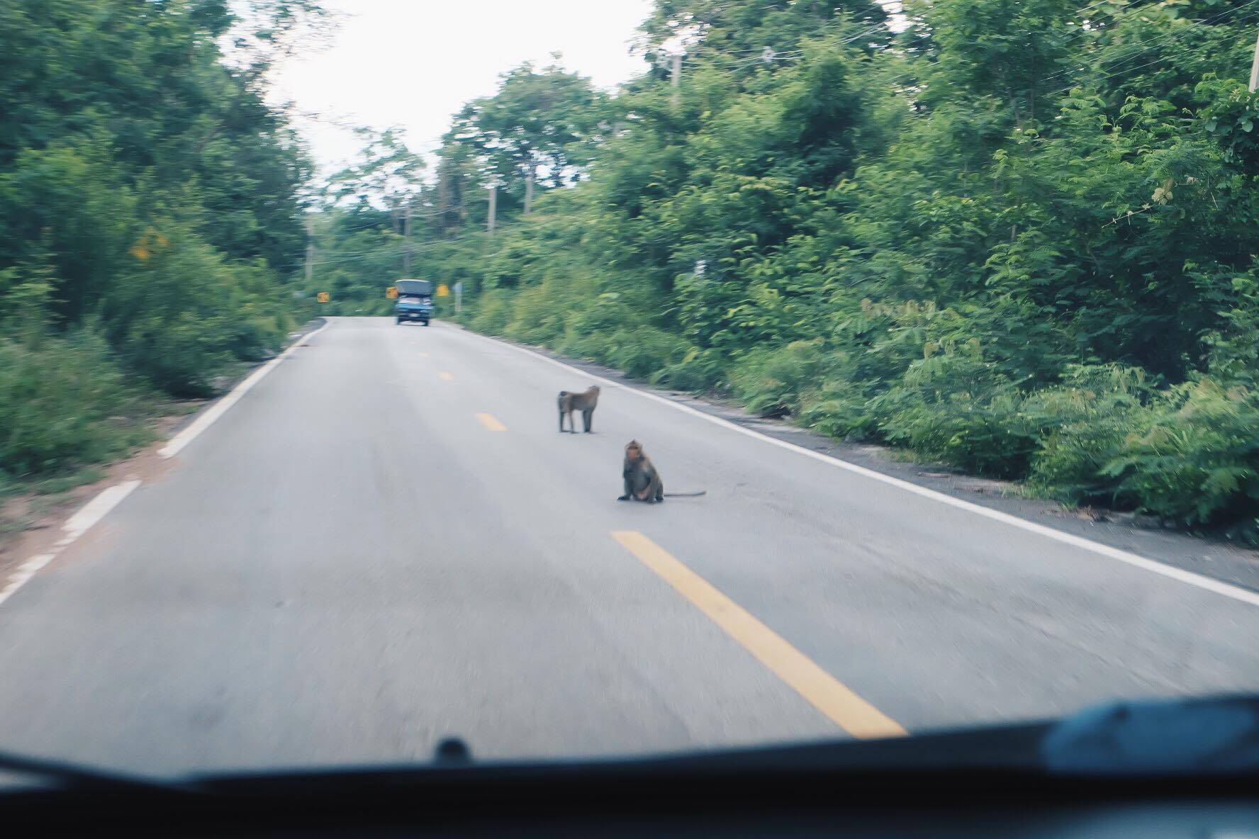 ปะ ไปเที่ยวกัน ระยะทางเข้าไปที่ร้านค่อนข้างลึก เข้าจากปากซอยทางเข้าน้ำตกเจ็ดคตไปประมาณ 8 กิโลเมตร โดยทางเราก็เปิดพี่GPSนำทางไปค่ะ สองข้างทางก็เขียวขจี ตอนเดินทางก็ประมาณบ่ายโมงกว่าๆ ไปชมบรรยากาศกันค่ะ อ๋อแอบเห็นป้ายให้ขับรถระวังลิง และก็เจอลิงจริงๆ 5555ระวังกันด้วยเด้อ ที่นั้นถิ่นพี่เค้า นั่งซะกลางถนนเลยค่ะ
