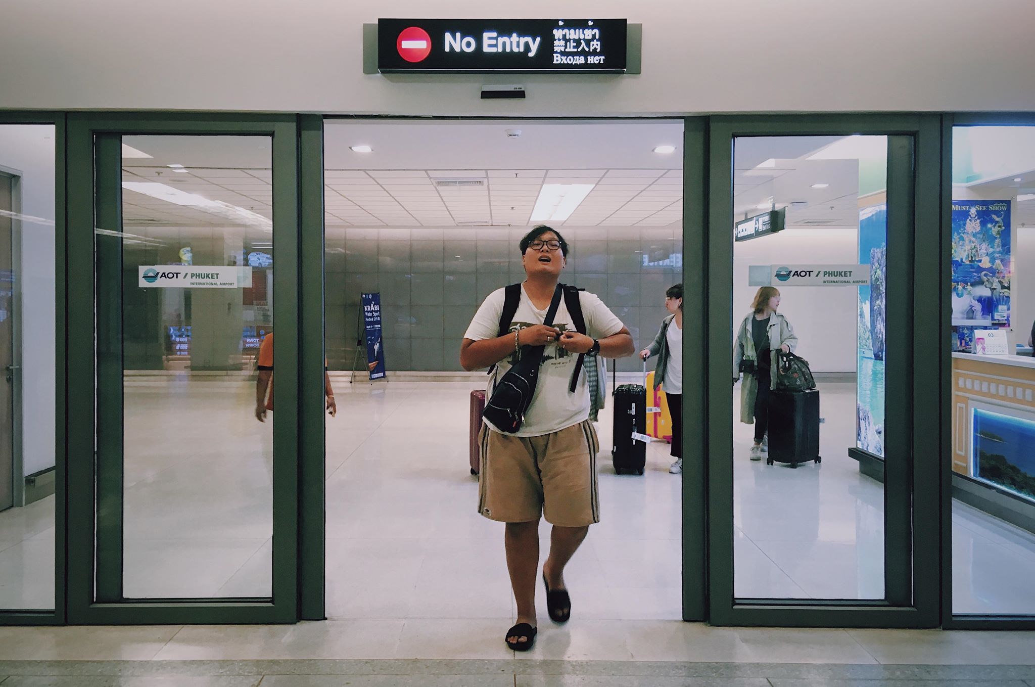 ฟู้ว… เสียงเครื่องบินค่อยๆพุ่งไปในอากาศพร้อมความมืดมิดในห้องโดยสาร สัญญาณขาดเข็มขัดนิรภัยปิดลง ผู้โดยสารบางคนค่อยๆปลดเข็มขัดออกจากตัวบ้าง สั่งอาหารบ้าง ไปเข้าห้องน้ำบ้าง ซึ่งผมก็ค่อยๆสังเกตผู้โดยสารรอบๆ ผมพบว่าเกินครึ่งนั้นเป็นผู้โดยสารชาวต่างชาติ มีทั้งชาวจีนบ้าง เกาหลีญี่ปุ่นบ้าง ฝรั่งก็มี แขกก็เยอะ ซึ่งผู้โดยสารที่นั่งข้างผมก็เป็นชาวต่างชาติเช่นกัน เป็น2สาวพี่น้อง คนพี่อายุประมาณ12-13 คนน้องอายุประมาณ10ขวบ วัยกำลังซนๆเลย