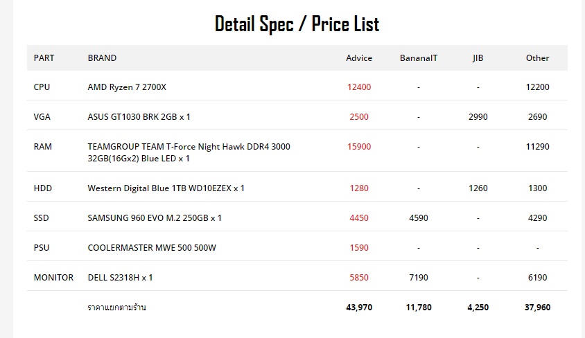 รบกวนช่วยดูสเปคคอมที่ผมจัดมาให้หน่อยครับ ควรเพิ่มตรงไหนบ้าง