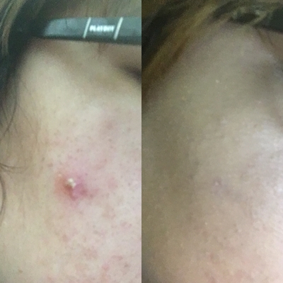 ภาพอาจจะแอบมืดไปนิดเพราะถ่ายตอนกลางคืน ส่วนสิวผดอื่นๆก็มีขึ้นมาบ้าง เพราะต่ายยังคงนอนดึกและไม่ออกกำลังกายอยู่ ครีมอื่นๆใดๆก็หยุดใช้ไปก่อนแล้ว มาจัดการเจ้าสิวหัวหนองนี่โดยเฉพาะเจาะจง ซึ่งก็ได้ผลเกินคาด หายแบบไม่ทิ้งร่องรอยอะไรไว้เลย บอกได้คำเดียวว่าคะแนนเต็มสิบขอให้สิบ สิบ สิบ ไปเลยยยยย