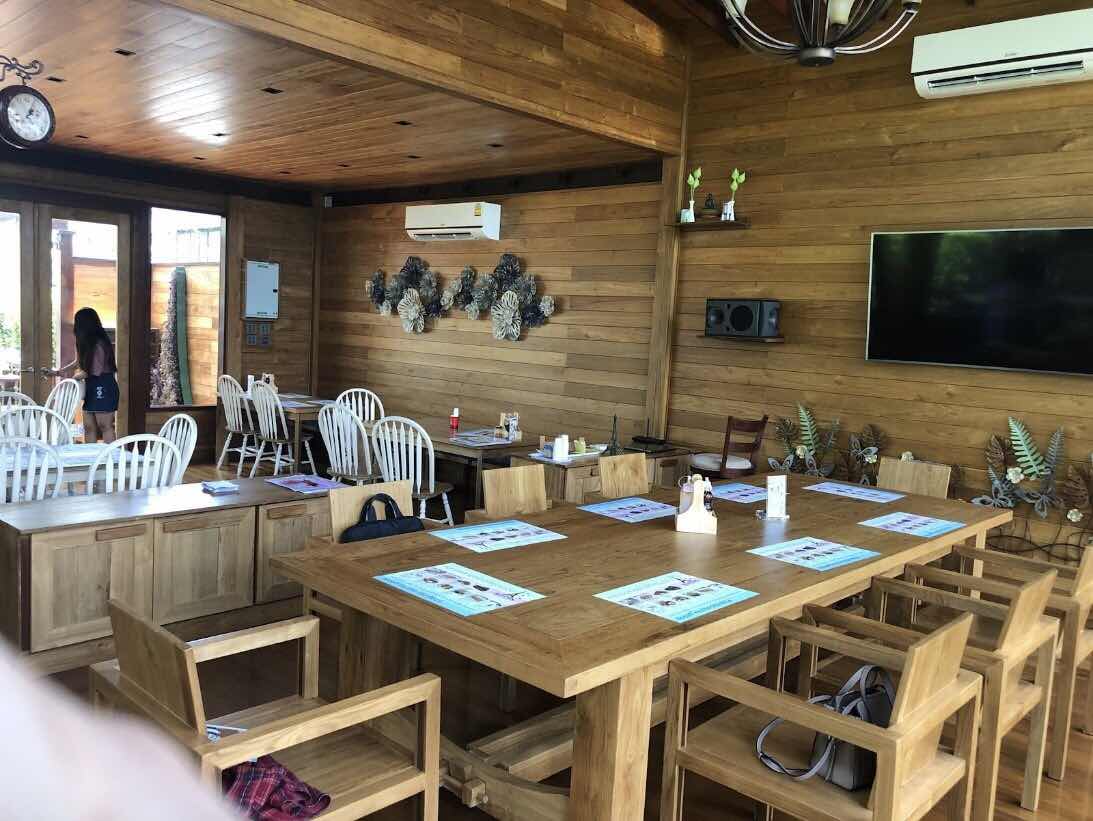 เอาล่ะ.. พอเราสำรวจร้านจนพอใจ ท้องก็เริ่มประท้วงขึ้นมาแล้วนิดหน่อย เลยเลือกที่จะนั่งในส่วนของบ้านไม้อินดอร์ พอเข้ามาแล้วนึกว่าอยู่เขาใหญ่ บ้านไม้หลังใหญ่มากๆ ให้ฟิลลิ่งเหมือนไปนั่งอยู่ท่ามกลางธรรมชาติมากเลยแม้บรรยากาศร้านจะดูน่ารักสดใส แต่ที่นี่ไม่ได้มีดีแค่ของหวานหรือเครื่องดื่มเท่านั้นนะคะ พอเปิดดูเมนูแล้วที่นี่ครบทั้งอาหารคาว-หวานเรียกว่ามาครบจบในที่เดียวเลยล่ะ