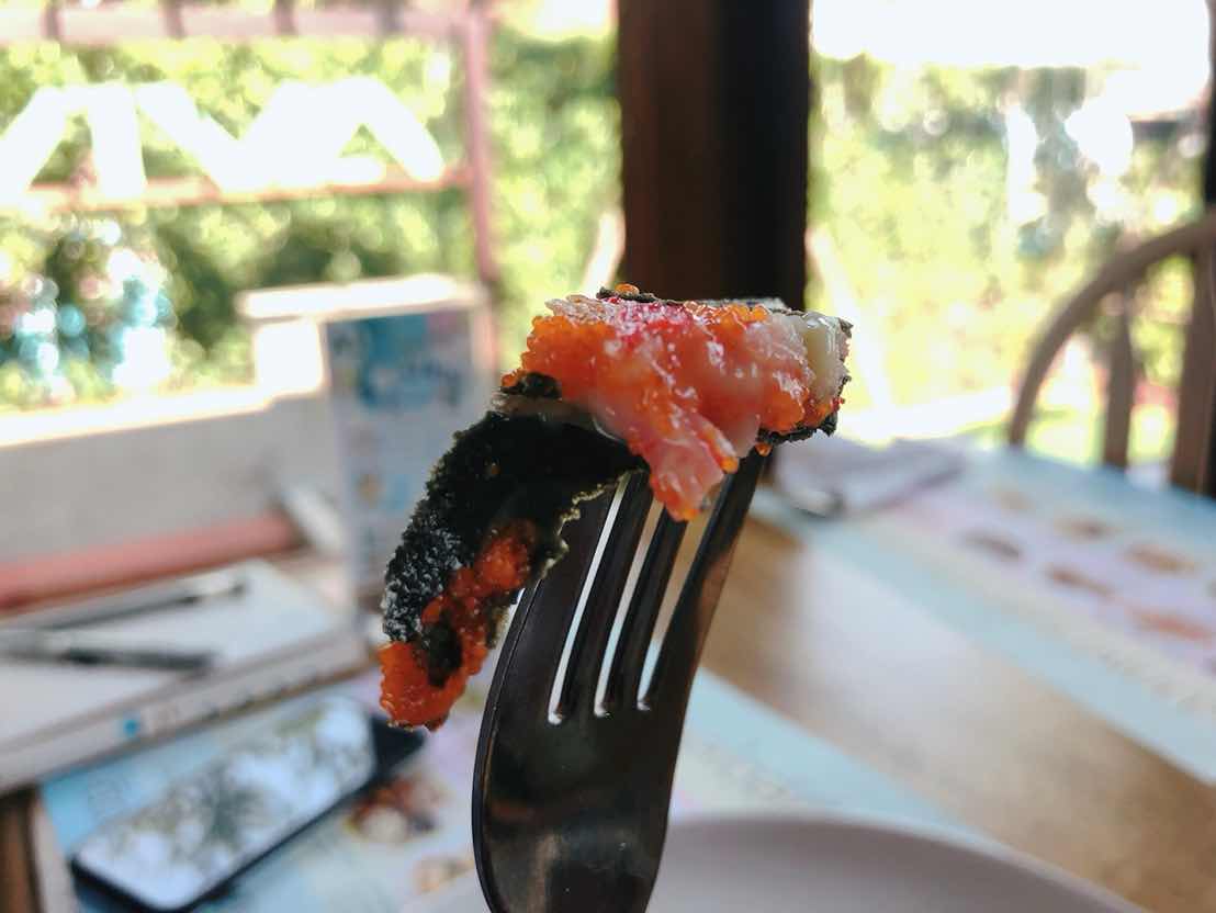 มาที่นี่จะไม่ให้ลองเมนูซิกเนเจอร์ได้ยังไง ต้องขอโดนสักหน่อย ว่าแล้วก็ลองสั่งชาโคลปูอัดไข่กุ้งยำสาหร่าย เครปชาโคลแป้งกรอบกำลังพอดีราดด้วยซอสวาซาบิ ที่นี่บอกก่อนว่าเขาไม่หวงไส้เลยนะคะ ให้มาแบบฟูลออฟชั่นมากๆ ใครชอบทานขอแนะนำเลย เมนูนี้ต้องมาโดน แถมราคาก็เป็นมิตรน่ารักเชียว