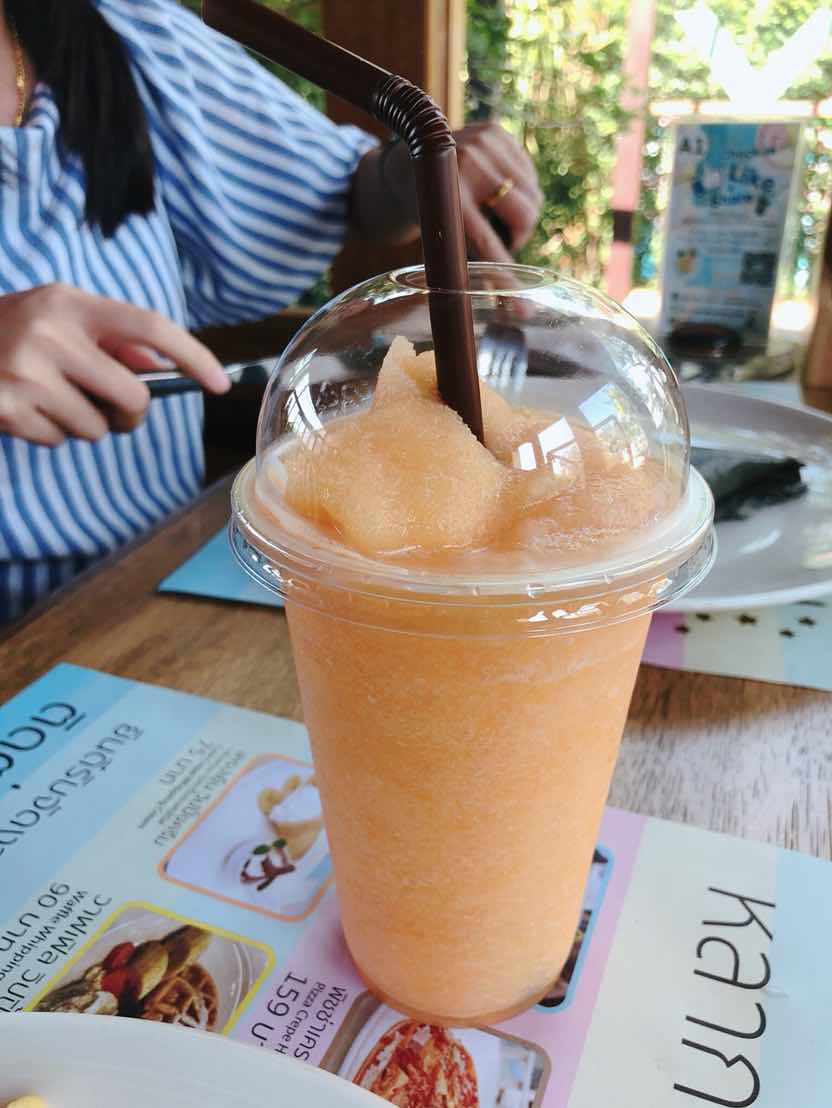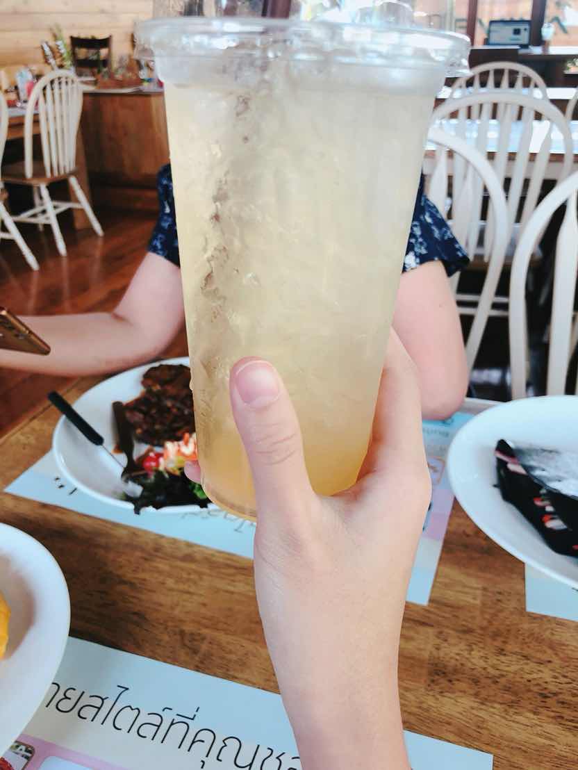 กินมาเยอะแล้ว คอแห้งจังเลยอะ อากาศร้อนๆ แบบนี้ ก็ต้องการอะไรที่สดชื่นๆใช่ไหมคะ เลยจัดมะนาวน้ำผึ้งและพีชปั่นมาอย่างละแก้ว ขอเริ่มที่มะนาวน้ำผึ้งก่อนเลย สีน้ำตาลนวลแก้วนี้ ใครง่วงๆ บอกเลยว่าตื่นเต็มตา สดชื่นสุดๆไปเลย ตามมาด้วยพีชปั่นสีส้มแก้วนี้ กลิ่นพีชลอยเตะจมูกขึ้นมาเลย หอมมากอ่ะ รสชาติก็ไม่ได้หวานจนบาดคอ เป็นพีชที่รสชาติพีชจริงๆ ไม่ได้มาแค่กลิ่น ดื่มแล้วสดชื่นคลายร้อนไปเลยค่ะ ข้อแนะนำ ไม่รู้ว่าคนอื่นเป็นไหม แต่ว่าอย่าดูดน้ำพีชปื้ดเดียวเยอะๆนะคะ ไม่งั้นได้จี๊ดขึ้นหัวแบบเราแน่ๆ