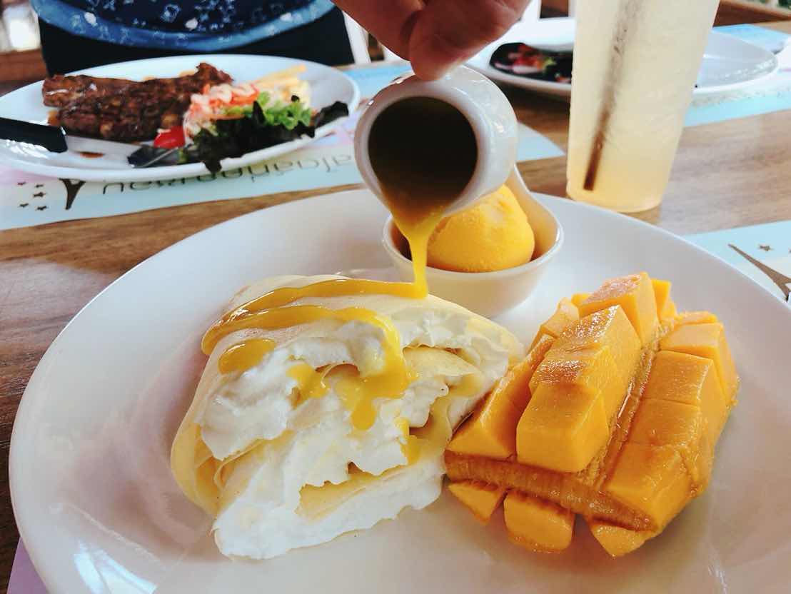 ดูความหอมนุ่มของเครปเย็นและวิปครีมนี่สิ กับซอสมะม่วง มันอร่อยลงตัวสุดๆเลยอะ