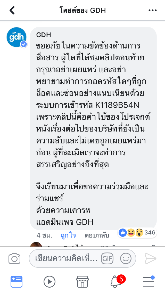 ล่าสุด GDH559 โปรโมทหนังเรื่องใหม่ทาง Live ในเพจ Facebook