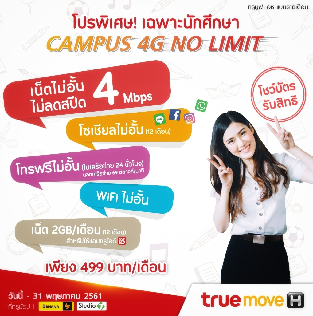 สอบถามโปร Campus 4G No Limit 4Mb 499บาท นี้หน่อยค่ะ