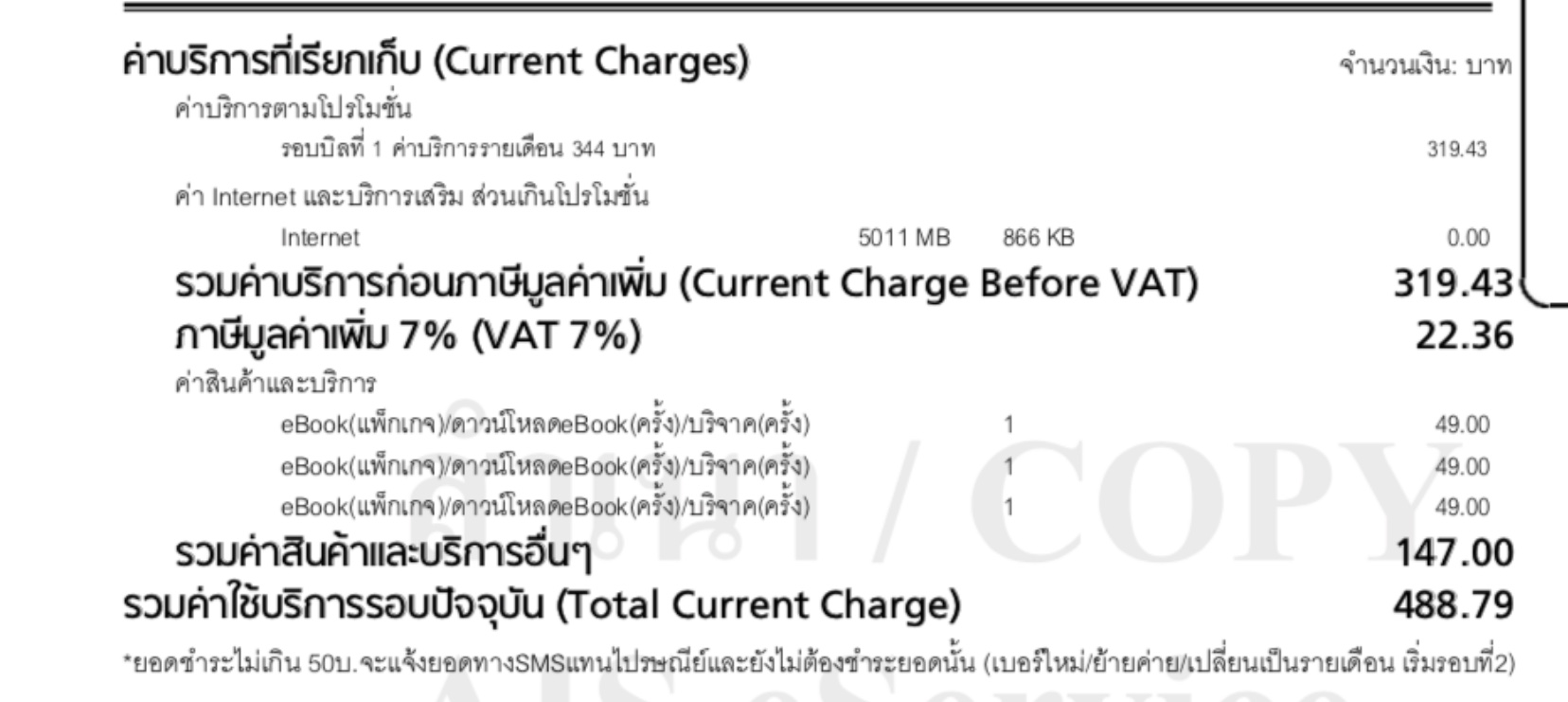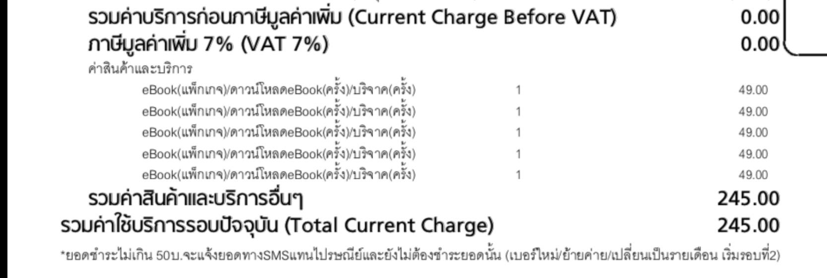 หลังจากนั้น มีบิลค่าบริการเรียกเก็บebook 3ครั้ง ครั้งละ49 (คาดว่าเป็นรายสัปดาห์)