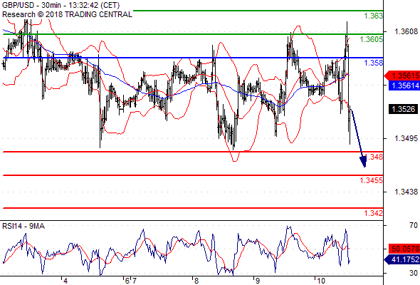 จุดที่ต้องการ: สถานะขายต่ำกว่า 1.3580 เป้าหมายต่อไปที่ 1.3480 และ 1.3455