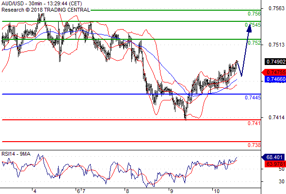 จุดที่ต้องการ: สถานะซื้อสูงกว่า 0.7445 เป้าหมายต่อไปที่ 0.7520 และ 0.7545