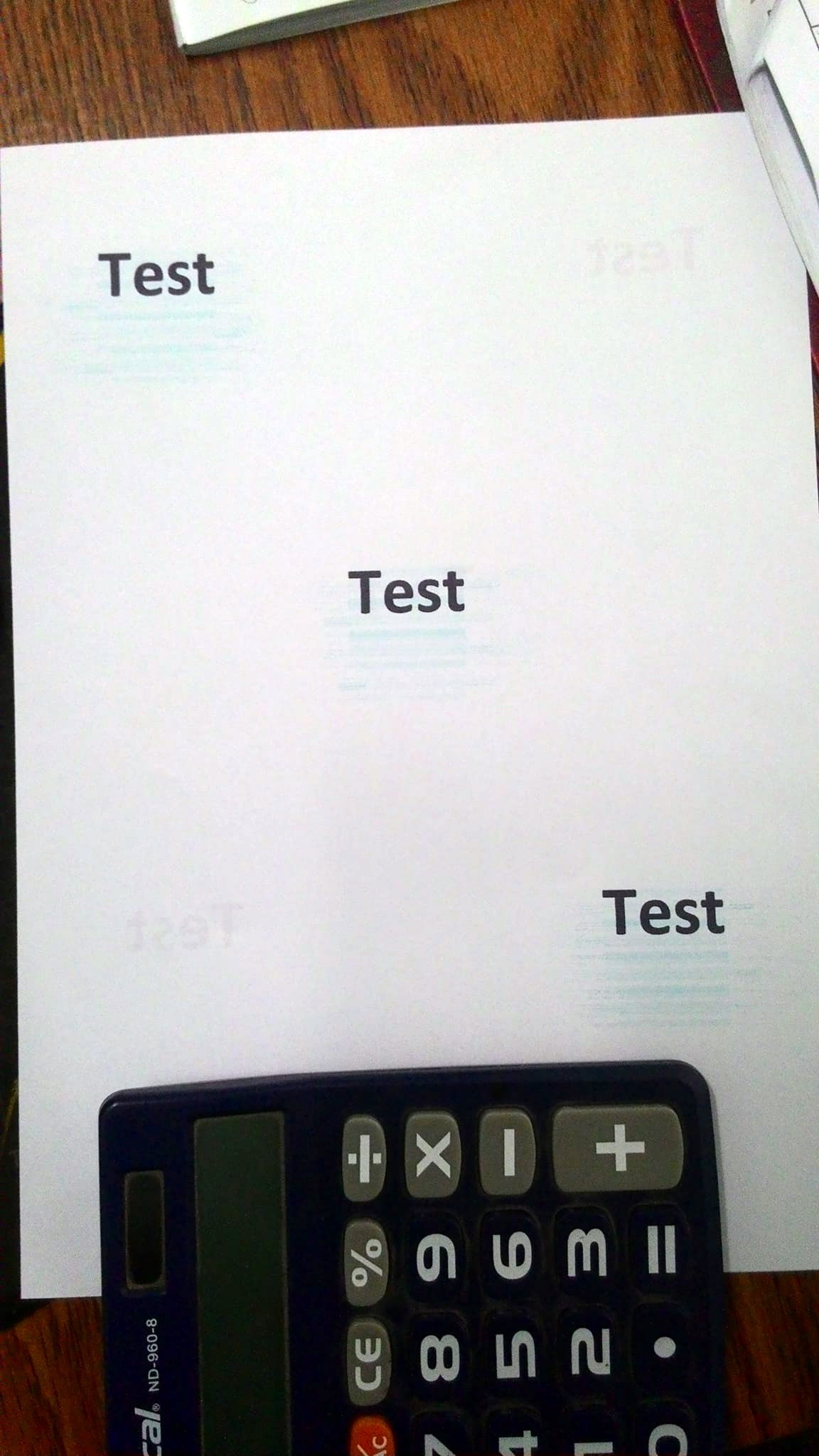 เครื่อง ME-301 มีอาการเวลาพิมพ์แล้วมีเงาสีฟ้า ออกมาครับ เทศหัวพิมพ์แล้วปกติ ออกครบทุกสีครับ