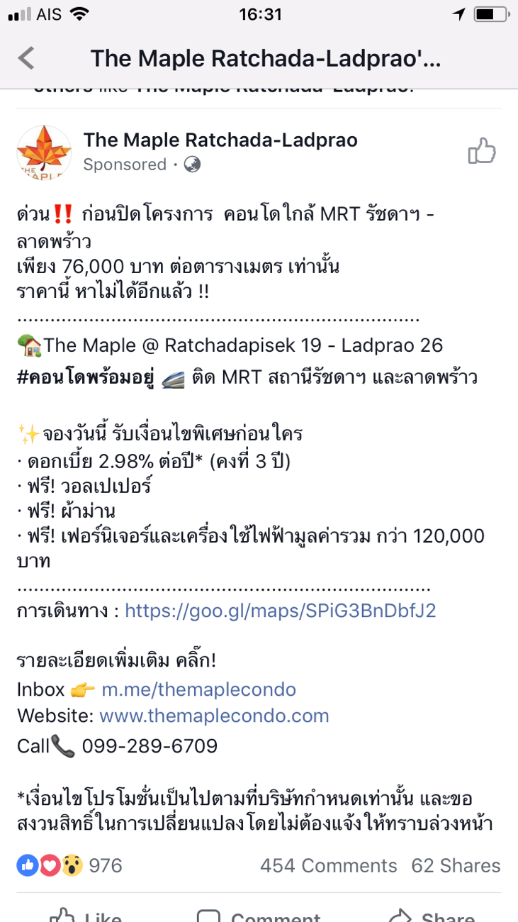 โดยส่วนตัวอยากได้ตึกhigh rise แต่ทำเลของMaple รัชดานี่ก็แจ่มเลยใช่ไหมครับ