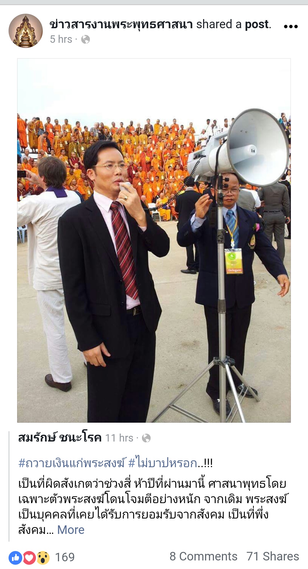 เรื่องการถวายเงินพระไม่บาป จากเฟซคุณสมศักดิ์ ชนะโรค