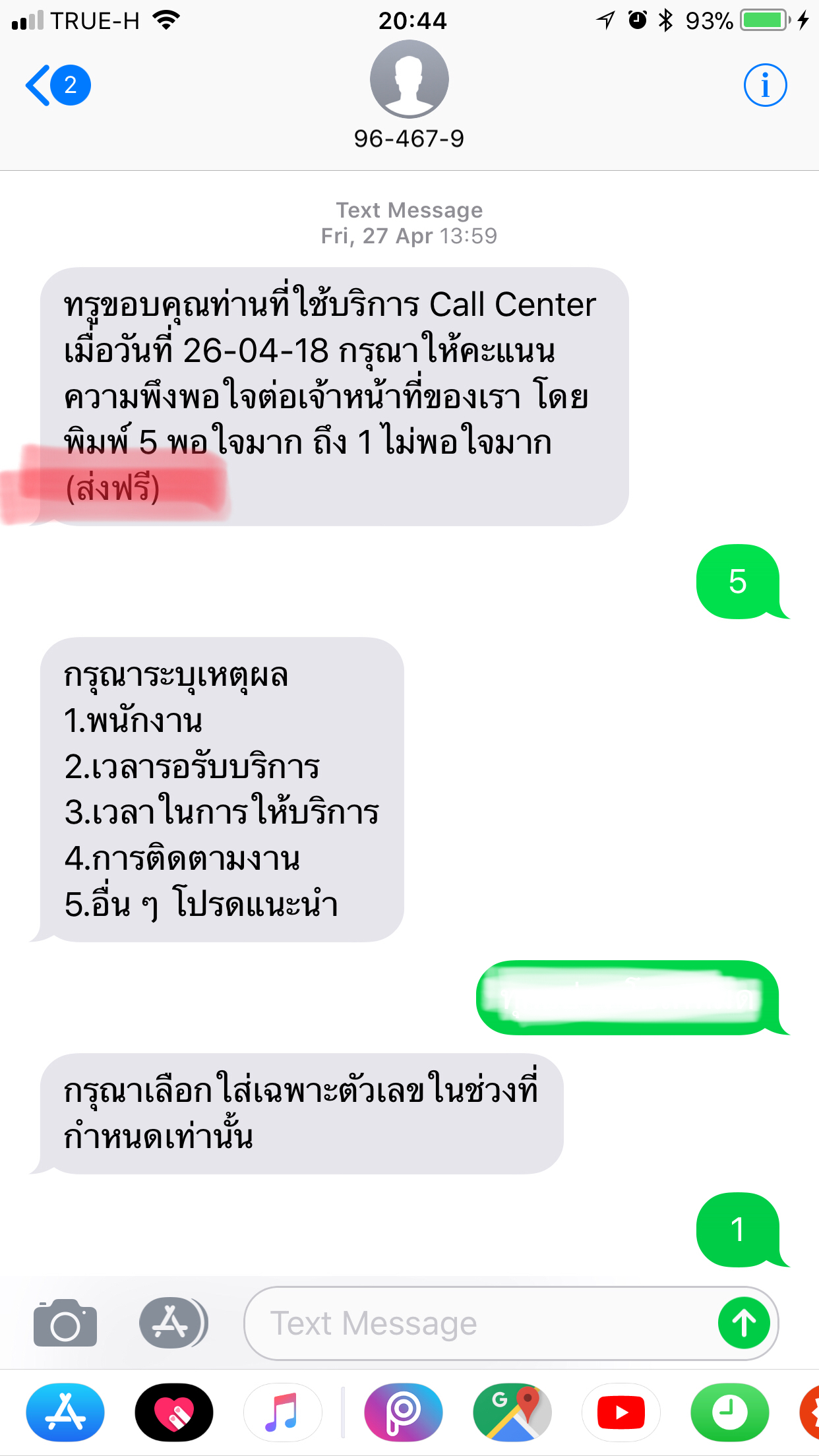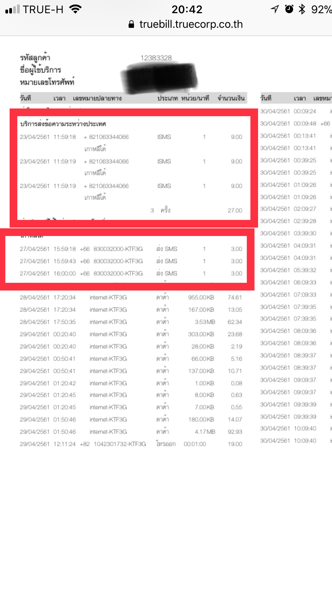 ส่วนวันที่ 26 มีโทรไปเปิดโรมมิ่ง เเล้วมีข้อความประเมินความพึงพอใจ มาถึงเราวันที่ 27 ซึ่งเราอยู่ ตปท เเล้วโดยในข้อความระบุว่าส่งฟรี เราจึงตอบข้อความไป เเต่ปรากฏ ข้อความที่ส่งไปกลายเป็นคิดเงินซะงั้น