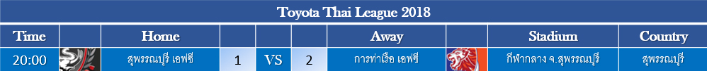 สรุปผลฟุตบอล ไทยลีก 2018 ประจำวันอาทิตย์ที่ 25 มีนาคม 2561 พร้อมตารางคะแนน