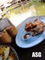 เพราะน้ำบางคนสามารถสั่งน้ำเปล่า ราคาก็น่าจะ 10 บาทต่อขวด และค่าอาหารอาจจะดูแพงไป แต่ค่าอาหารจะแพงหรือไม่แพงขึ้นอยู่กับการเลือกกินของแต่ละคน แต่ที่เราเลือกกินอันนี้เพราะอยากกินและหิวมาก ที่จริงในตลาดก็มีก๋วยเตี๋ยวเรือนะ