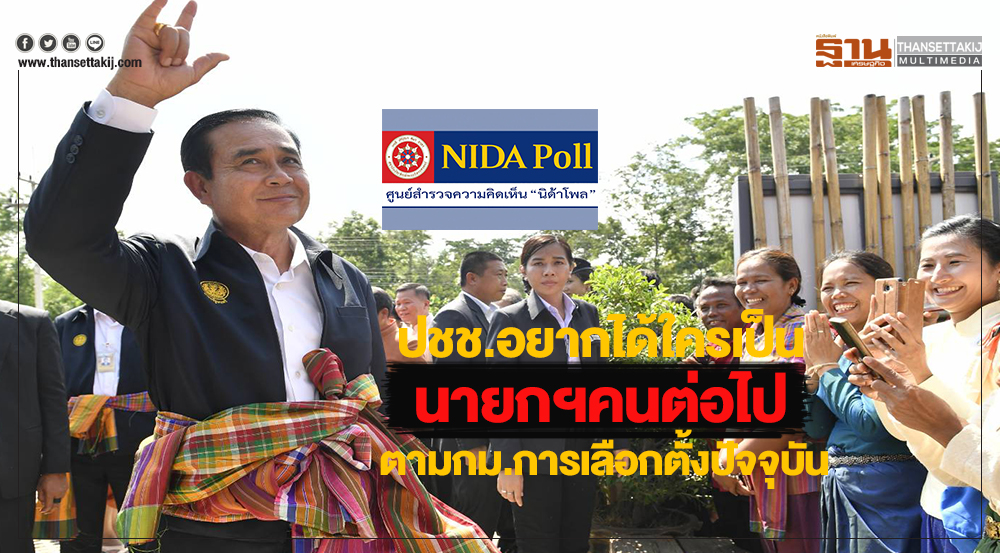 ศูนย์สำรวจความคิดเห็น “นิด้าโพล” สถาบันบัณฑิตพัฒนบริหารศาสตร์ (นิด้า) เปิดเผยผลสำรวจความคิดเห็นของประชาชน เรื่อง “ประชาชนอยากได้ใครเป็นนายกรัฐมนตรีคนต่อไป ตามกฎ