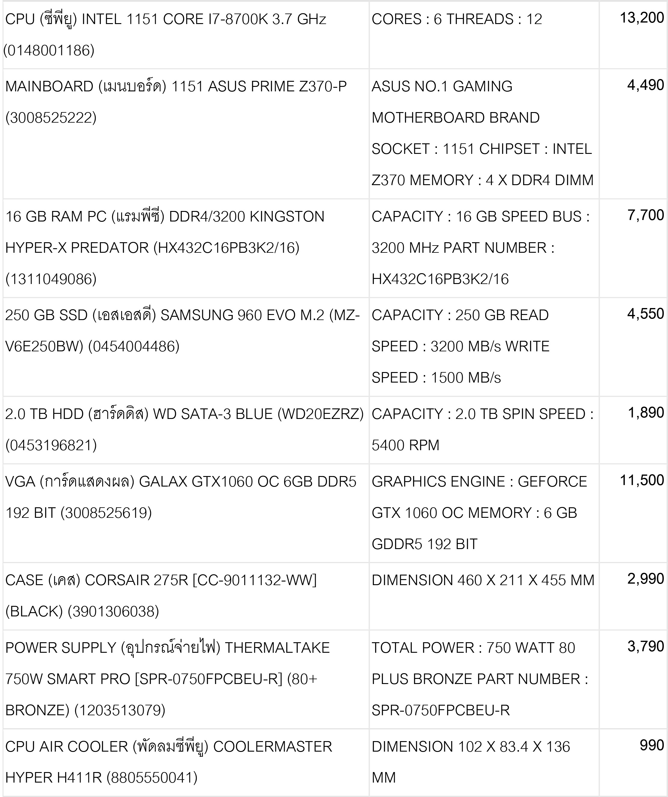 จัดสเปคคอมให้ทีค่ะ