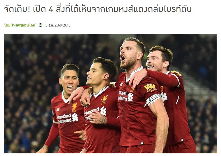 จัดเต็ม! เปิด 4 สิ่งที่ได้เห็นจากเกมหงส์แดงถล่มไบรท์ตัน