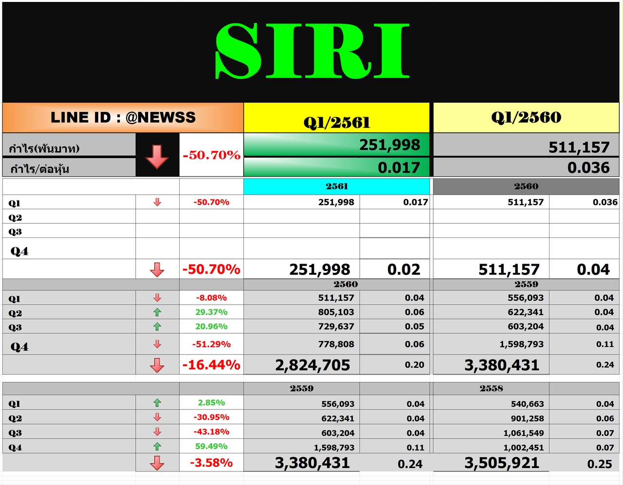 งบ SIRI ออกมาแบบนี้ วันนี้จะวิ่งกระฉูดมั๊ยครับ