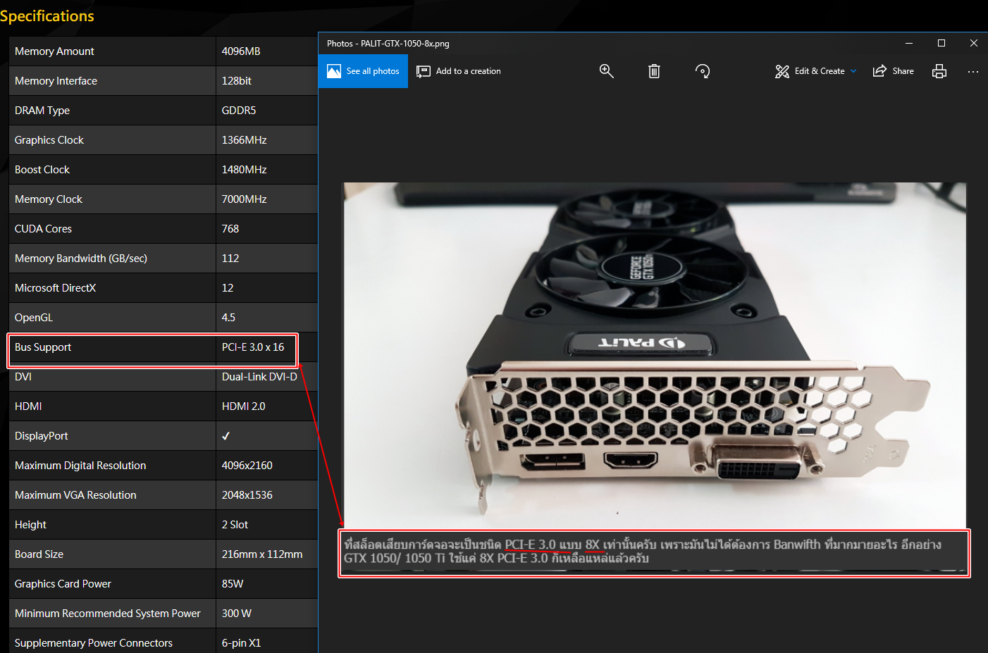 ตัวการ์ดจอ GTX 1050 Ti Dual OC (4GB GDDR5) ตัวการ์ดมันเป็น 8x หรือ 16x ครับ ผู้รู้ช่วยหน่อย