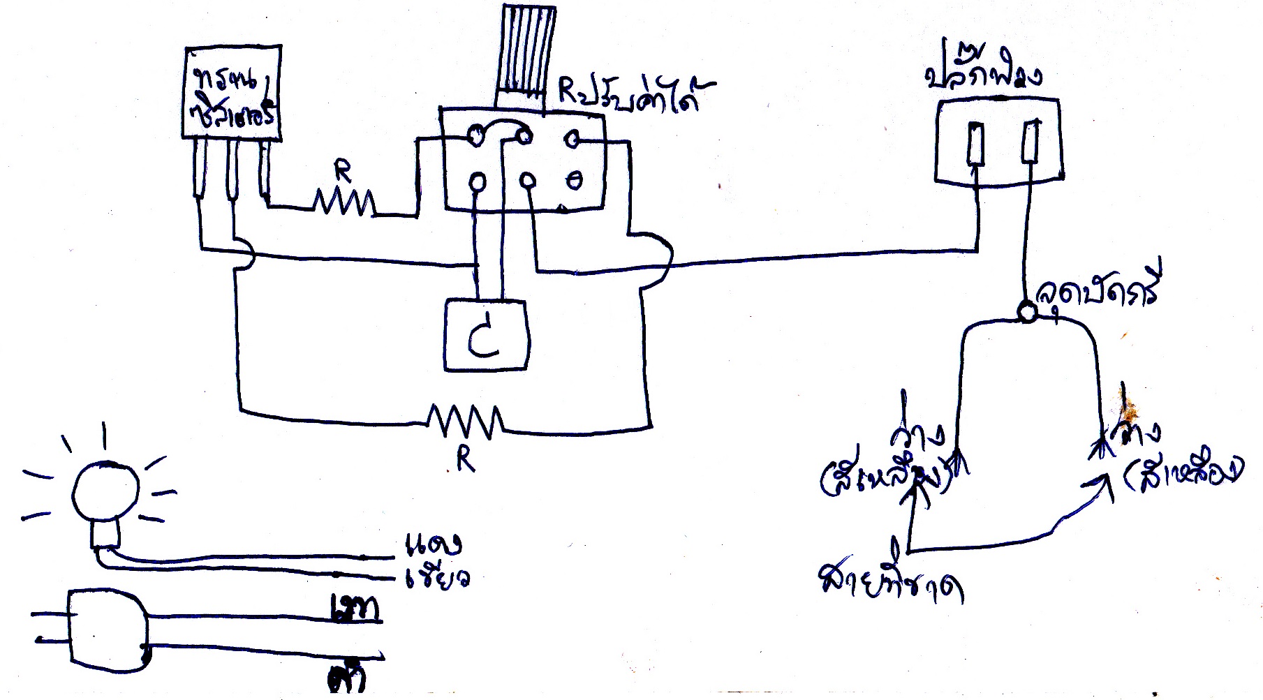 เป็นวงจรหรี่ไฟหัวเตียงครับ เนื่องจากเคลื่อนย้ายเตียงแล้วลืมถอดปลั๊กไฟ จึงทำให้สายไฟขาดออกจากกัน ซึ่งขาดออกเป็นสามส่วนเลย ได้แก่ แผงวงจร สายไฟจากปลั๊กไฟ และสายไฟที่ไปหลอดไฟ ตามรูป รบกวนผู้รู้ช่วยหาจุดต่อเข้าหากันให้หน่อยครับ ขอบคุณครับ