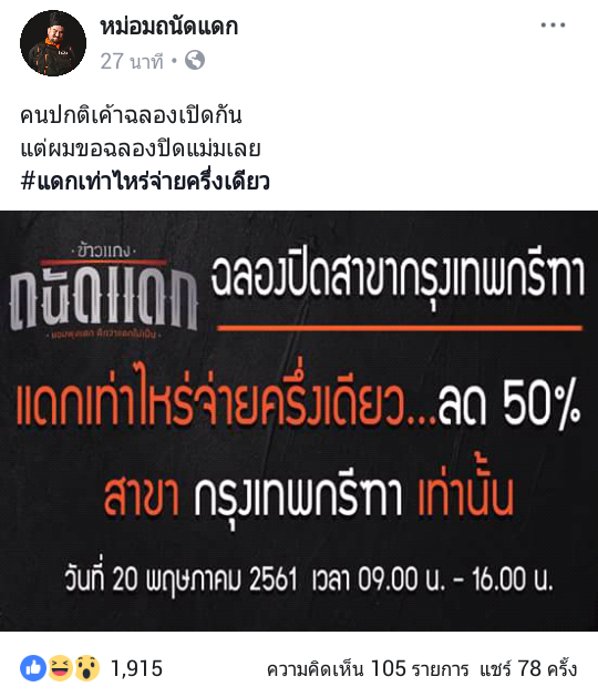 ฉลอง "ปิด" ร้าน สาขากรุงเทพกรีฑา ลดราคา 50% #ข้าวแกงซีฟู้ดหม่อมถนัด