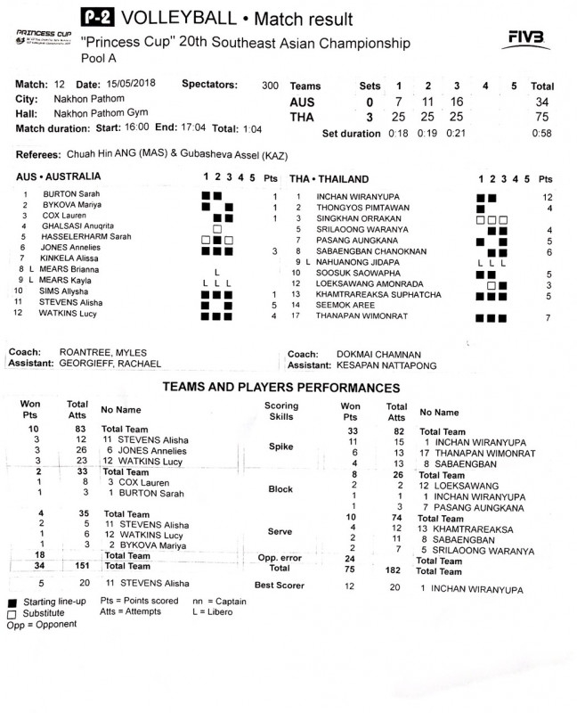 พักดราม่ากัน มาดูสถิติอย่างเป็นทางการ Thailand-Australia Volleyball U17 Princess Cup 2018