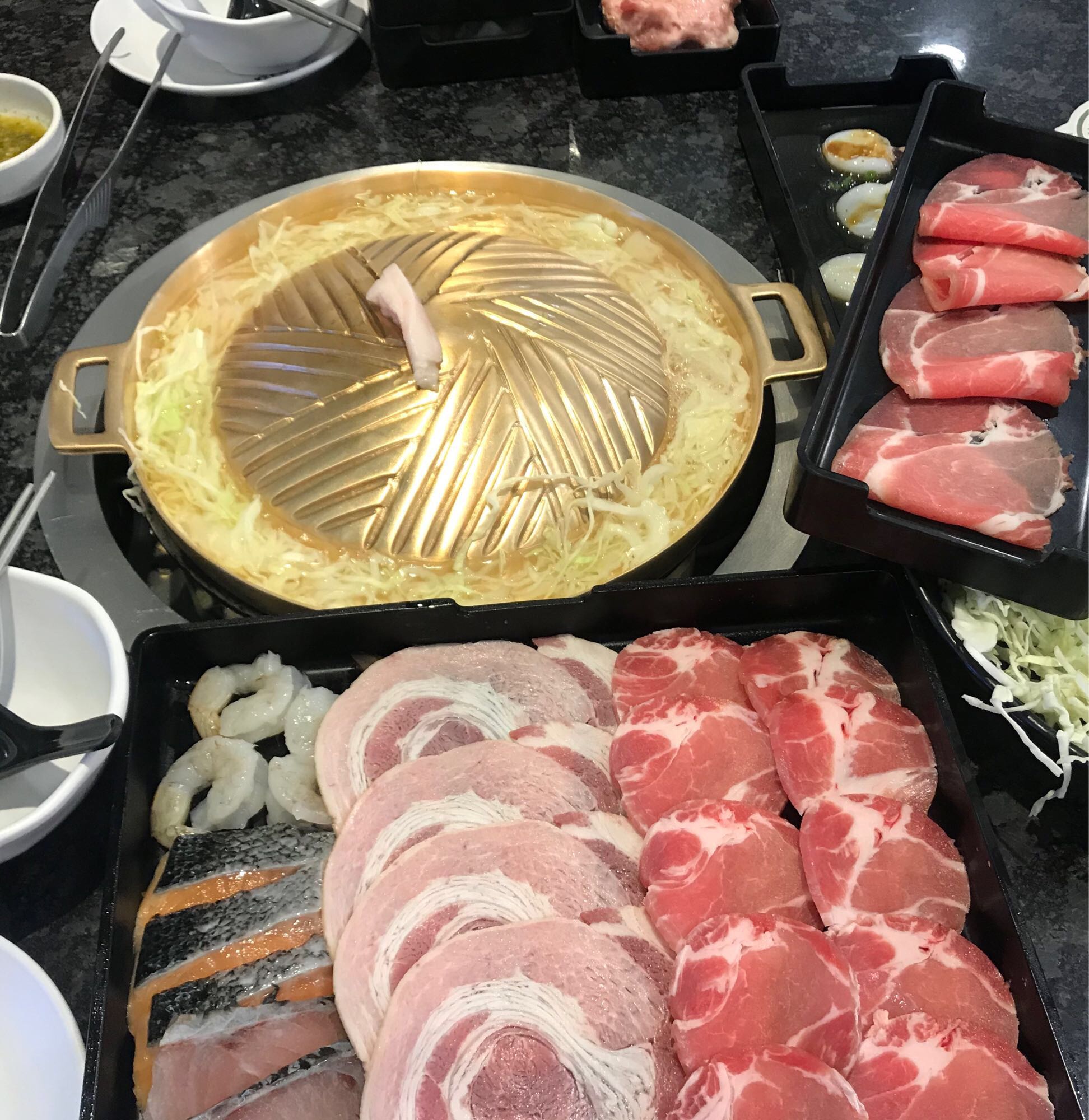 ราคาเริ่มต้น399฿ เราเลือก499฿ เพิ่มกุ้ง ปลาหมึกเจาะซอสมิโซะ กุ้งสด คอหมูย่าง(เราว่าดีเพราะติดมันด้วย)ซอสต้นหอม คอหมูย่างโบมิตาเระ หมูชาบู เยอรมันเบคอน เนื้อชาบู สาหร่ายวากาเมะ เต้าหูห่อกุ้ง ปลาแซลมอนนอเวย์ ปลามาฮิมาฮิ นวดปลาหมึก ลูกชิ้นชีส มีไอศรีมรสวนิลาและมะนาว ข้าวผัดกระเทียม ซุปเกี๊ยวกุ้ง เส้นอุด้ง ฯลฯ เพิ่มเงิน100฿ ได้ไลน์อาหารมากขึ้นค่ะ