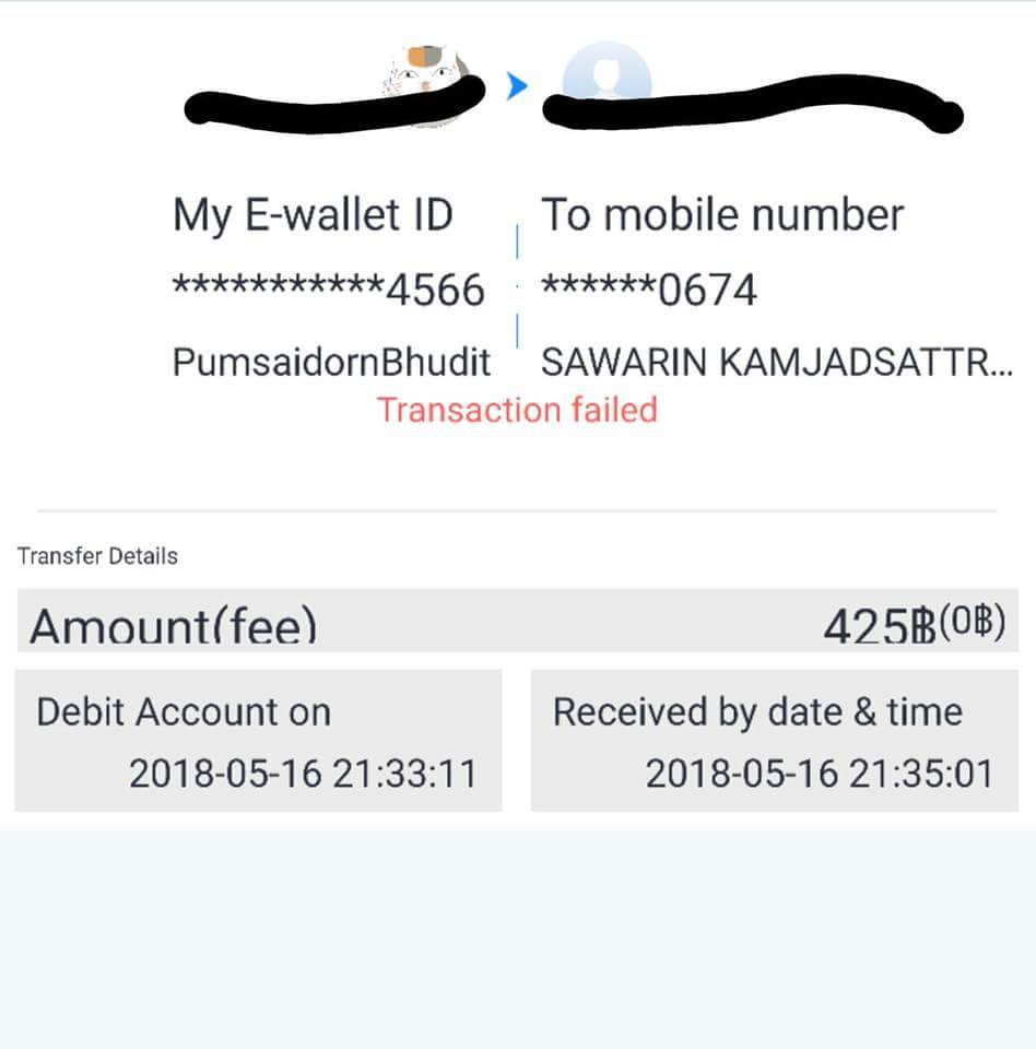 ใช้แอพ bluepay โอนเงินแล้วการทำรายการไม่สำเร็จ แต่เงินถูกตัดไปเฉยเลย?