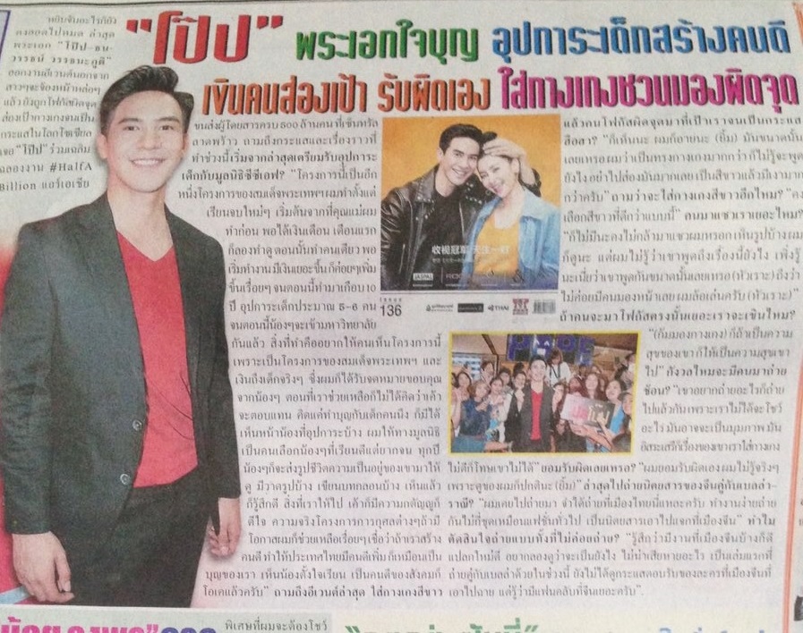 "สังคมไทย ยังไม่ขาดคนดี" หน้าข่าวบันเทิง ไทยรัฐ โป๊ป พระเอกใจหล่อ อุปการะเด็ก สร้างคนดี...เยาวชนไทยเอาพี่ โป๊ป เป็นแบบอย่างกันนะ..ออเจ้า