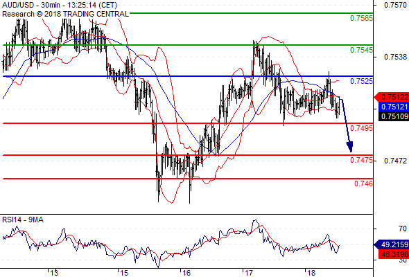 จุดที่ต้องการ: สถานะขายต่ำกว่า 0.7525 เป้าหมายต่อไปที่ 0.7495 และ 0.7475
