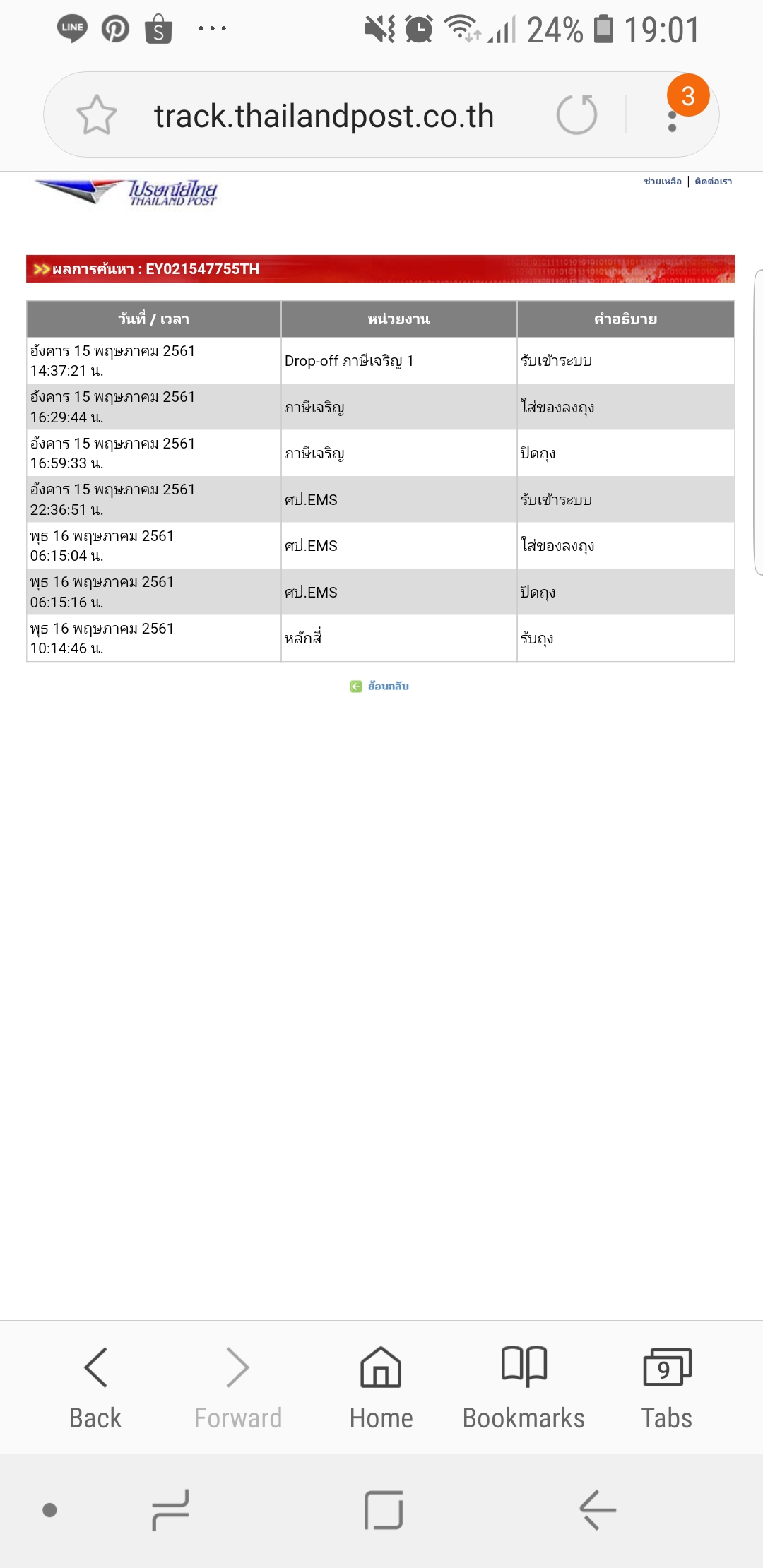 [EMS] อยากติดต่อไปรษณีย์ไทยจากต่างประเทศ เรื่องสเตตัสส่งพัสดุไม่ได้รับการอัพเดท