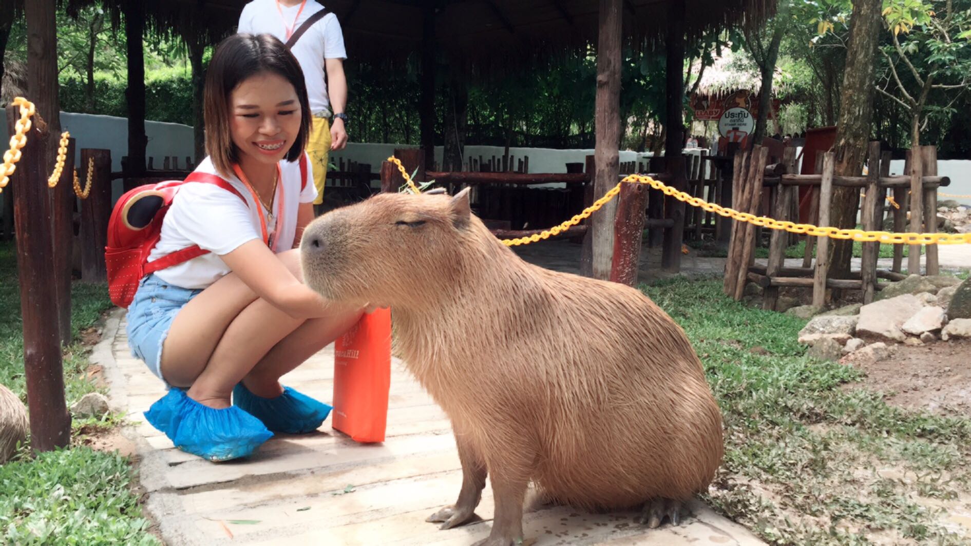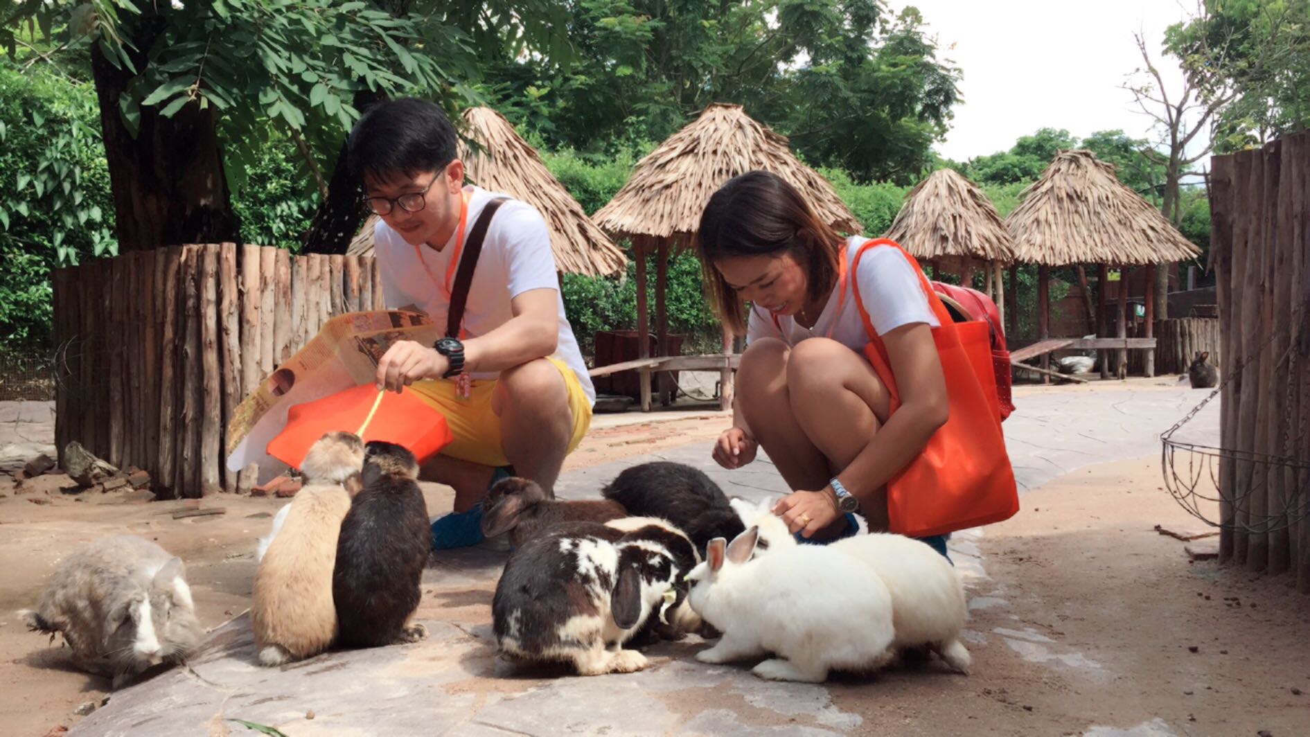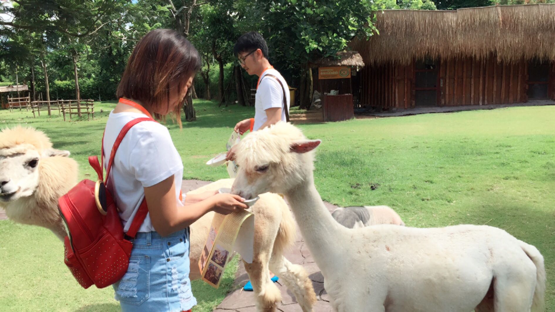 ก่อนเข้ามาชมสัตว์ข้างใน ทางฟาร์มจะแจกกระเป๋าผ้าใบนึ่ง ข้างในมีกระดาษให้ปั๊มตราตามโซนต่างๆ ถ้าเราปั๊มครบก็สามารถนำไปแลกของที่ระลึกของฟาร์มได้ค่ะ เจ้าหน้าที่นำเที่ยวน่ารักมว๊าาาาาก ถ่ายรูปให้ตลอดแค่ยื่นโทรศัพท์ให้ ถ่ายเสร็จน้องคืนโทรศัพท์ให้ค่ะ เสร็จแล้วกลับที่พักนอนพักผ่อนเอาแรงค่ะ