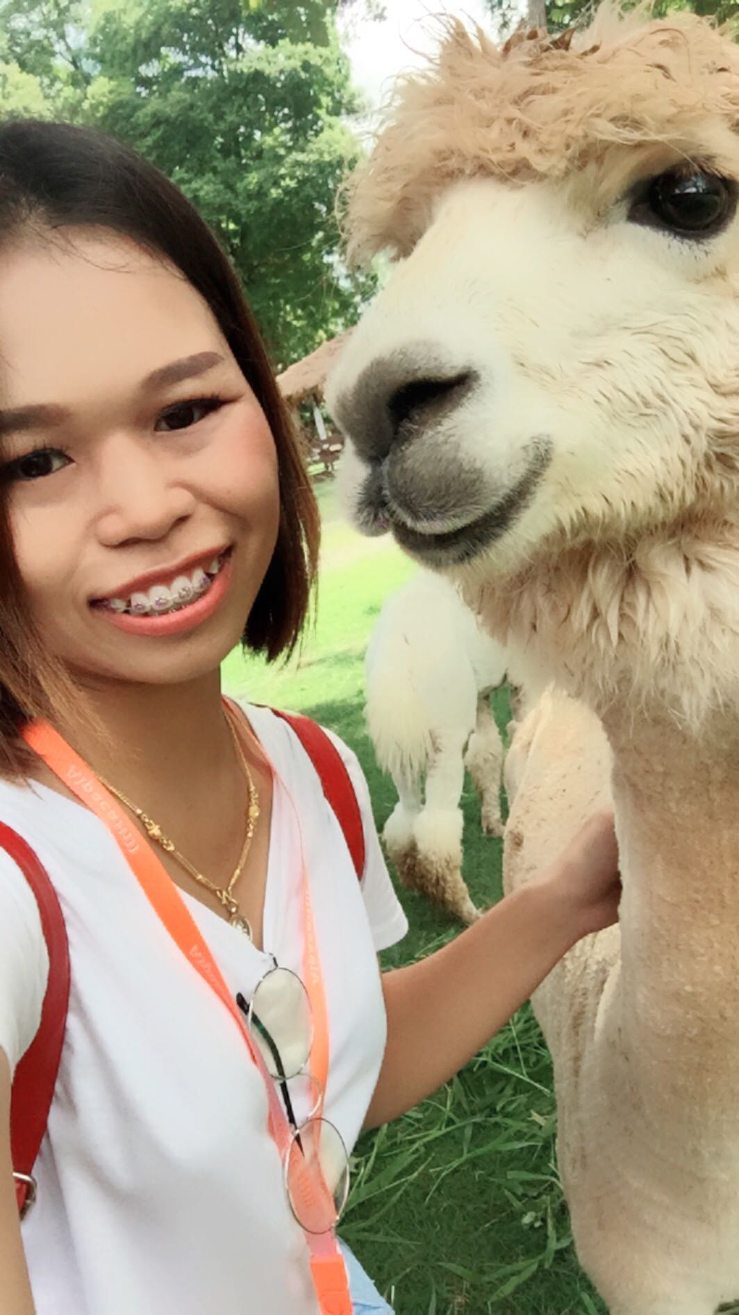 เจ้าอัลปาก้าตัวนี้ชื่อ สมิทค่ะ นายแบบประจำฟาร์ม